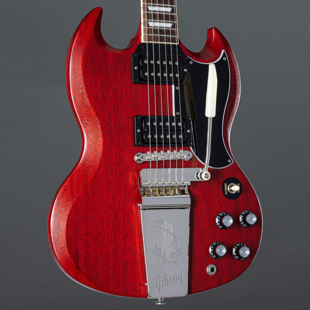 Beim Bau der SG Standard ’61 Maestro Vibrola greift Gibson selbstverständlich auf die amtliche Set-Neck Bauweise mit Hals und Korpus aus Mahagoni zurück, die in Verbindung mit dem dünnen Satin-Nitro-Finish die Grundlage für ein druckvolles und Sustain-reiches Klangbild schafft. Während das amtliche Double-Cut-Design ein angenehmes Handling der Gitarre sowohl im Sitzen als auch im Stehen verspricht, garantiert das schlanke „Slim Taper“ Halsprofil agile Spieleigenschaften in sämtlichen Lagen des 22-bündigen Palisandergriffbretts.