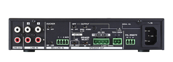 Tonquellen können über einen Mikrofon-/Line-Eingang mit umschaltbaren Anschlüssen auf der Vorder- und Rückseite (letzterer unterstützt Paging), einen Stereo-Line-Eingang über Cinch-Buchsen und drahtlos über Bluetooth eingebunden werden. Für das Mikrofon gibt es eine Ducking-Funktion, die bei Durchsagen die Hintergrundmusik automatisch leiser macht. Über separate Pegelsteller lassen sich die Pegel der einzelnen Quellen auf einfache Weise mischen.